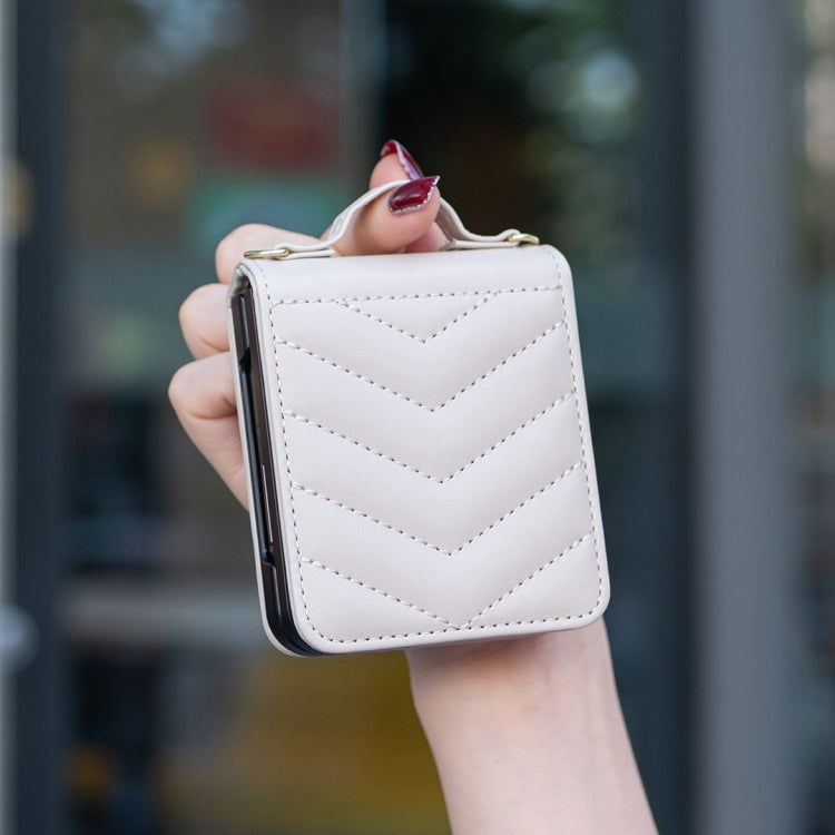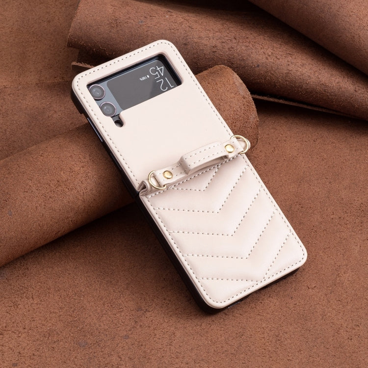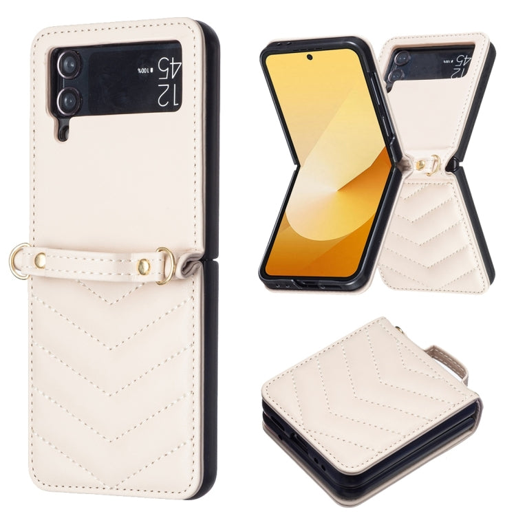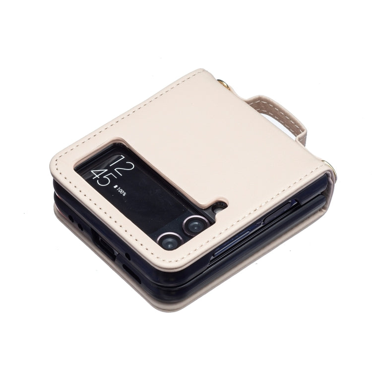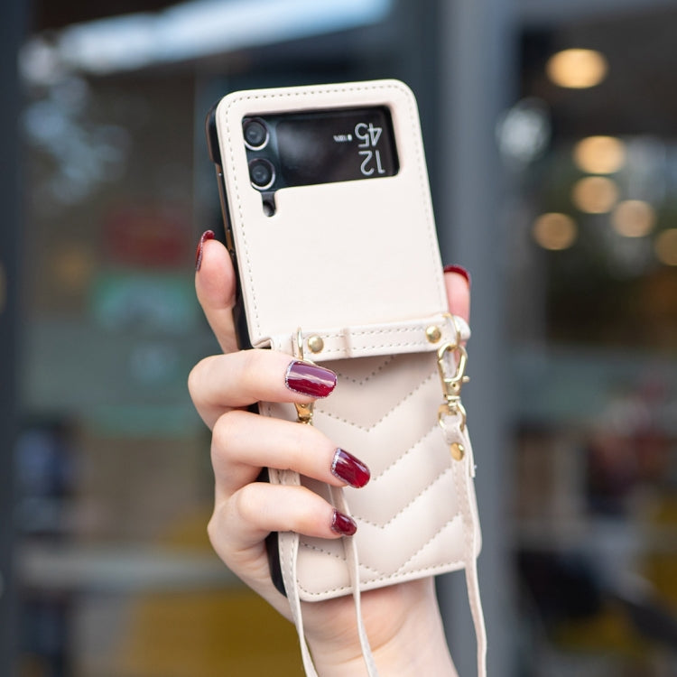 Wave-Shaped Crossbody Leather Case with Lanyard Beige Galaxy Z Flip 4