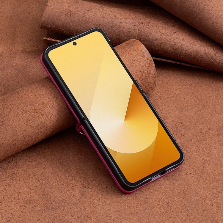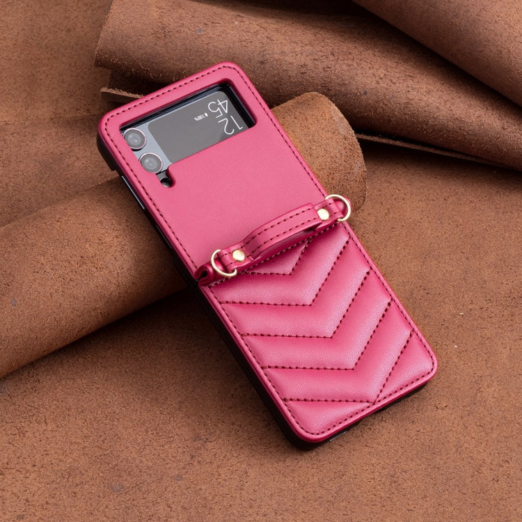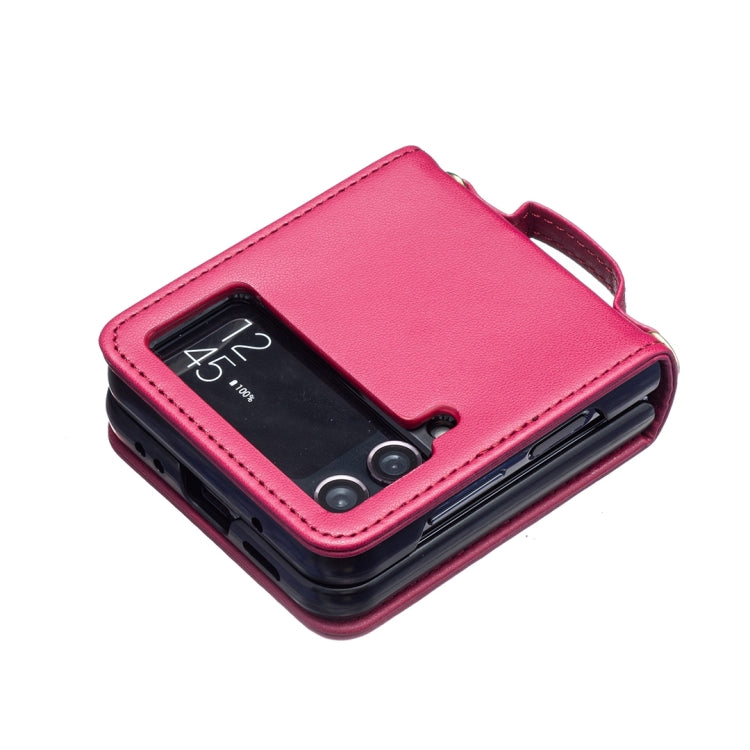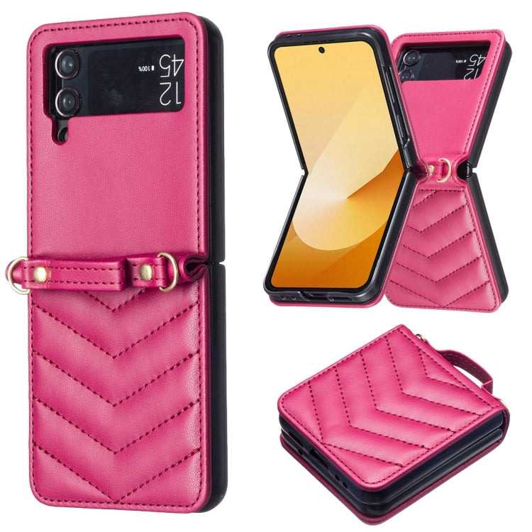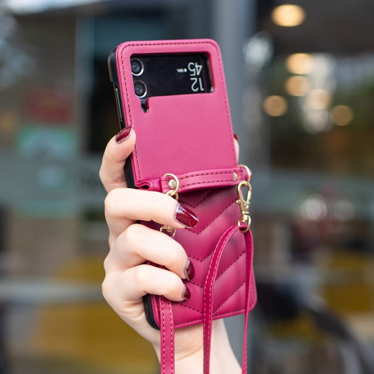 Wave-Shaped Crossbody Leather Case with Lanyard Rose Red Galaxy Z Flip 4