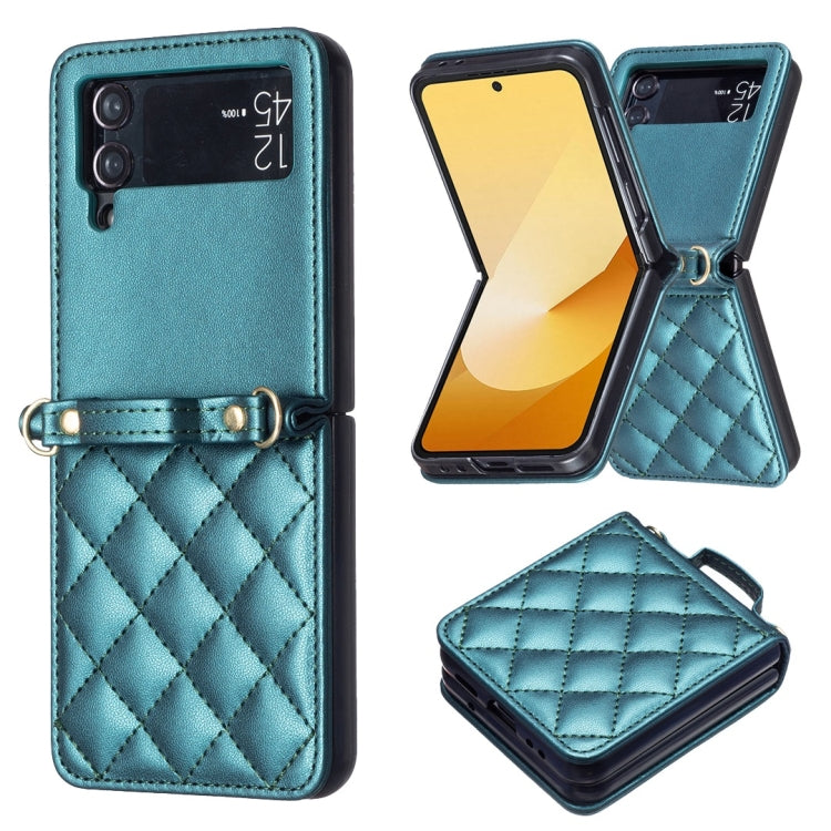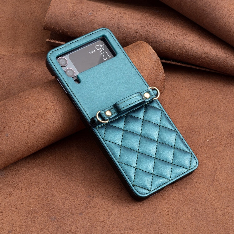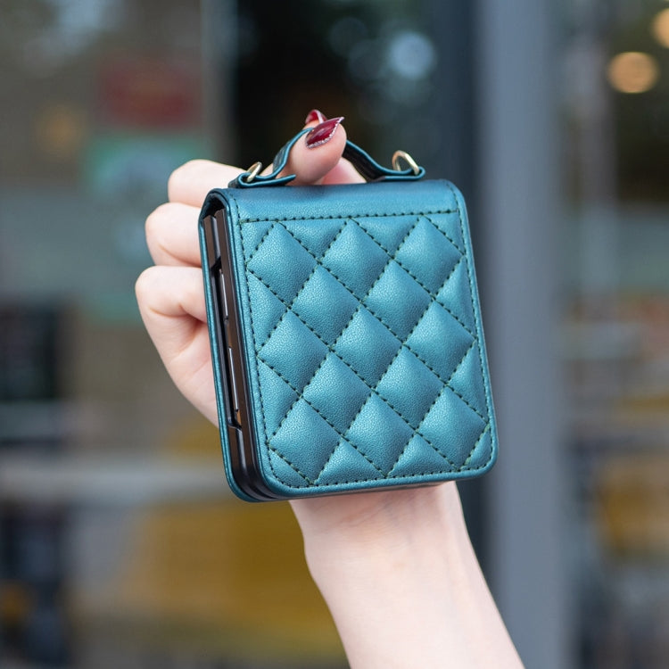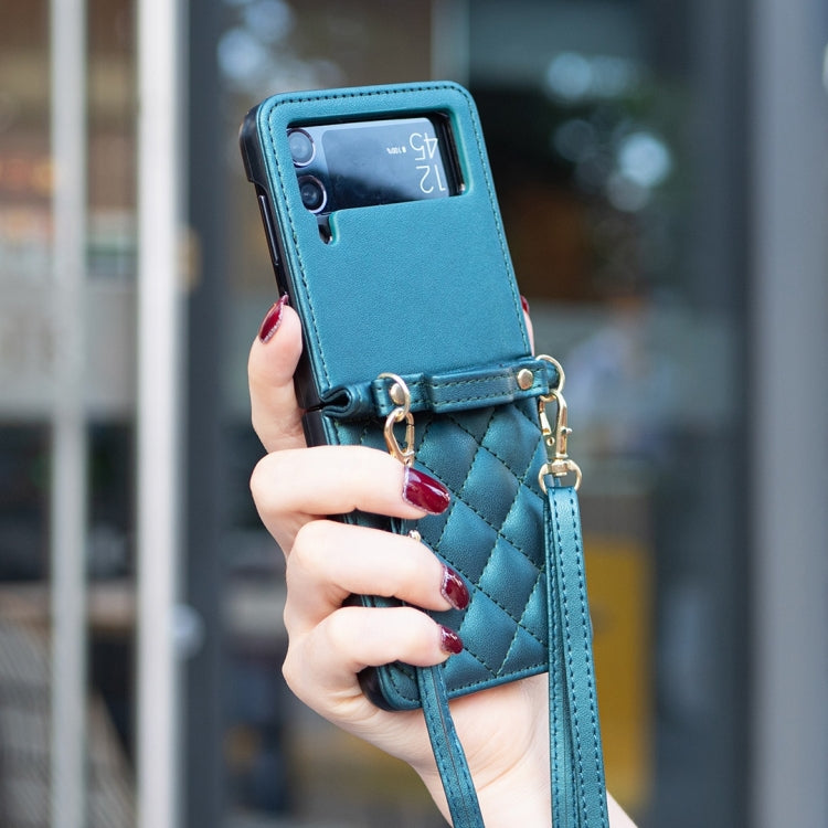 Rhombus-Shaped Crossbody Leather Case with Lanyard Green Galaxy Z Flip 4