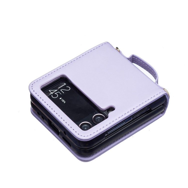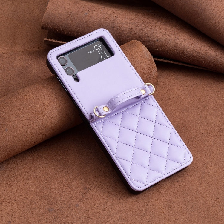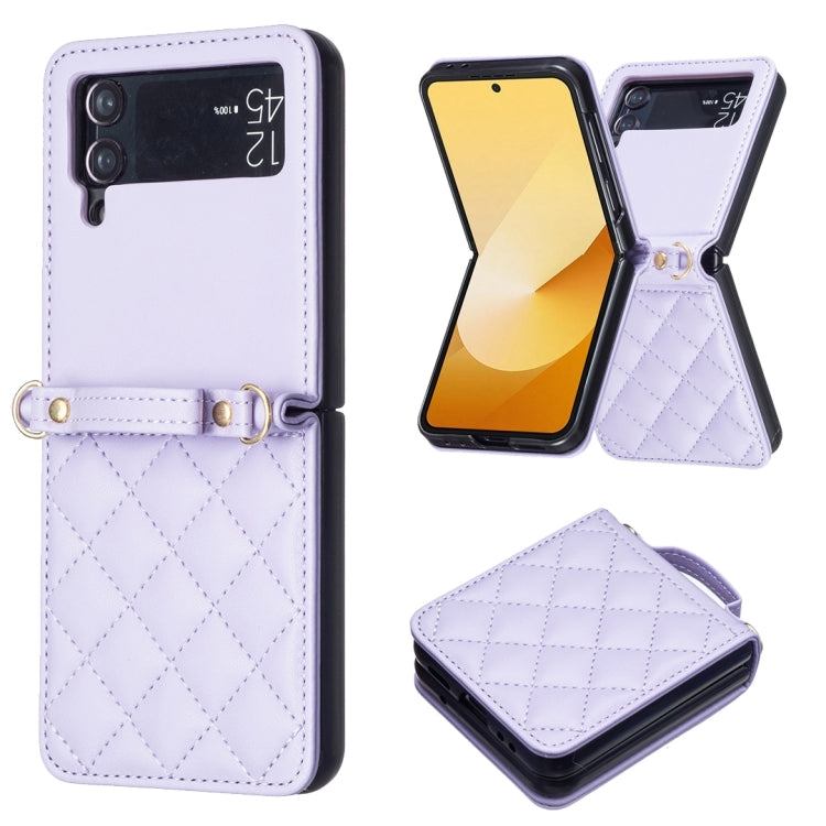 Rhombus-Shaped Crossbody Leather Case with Lanyard Purple Galaxy Z Flip 4