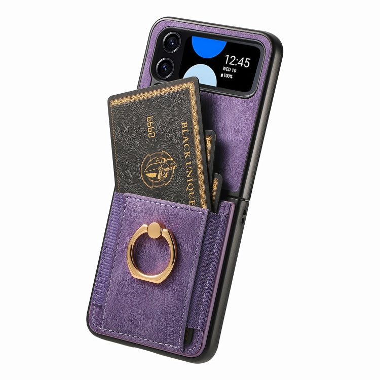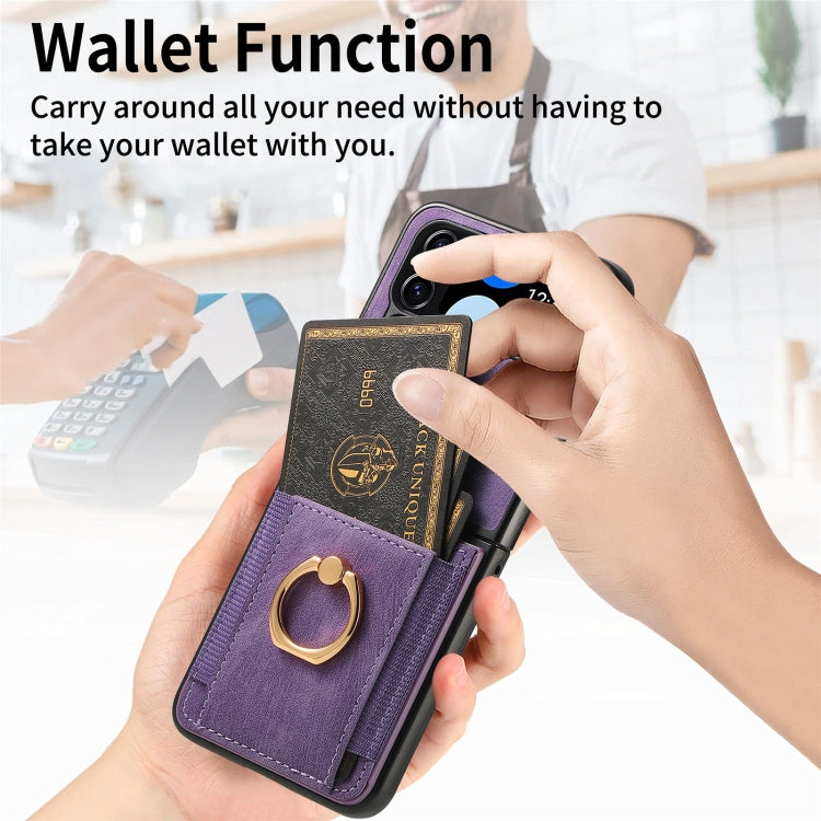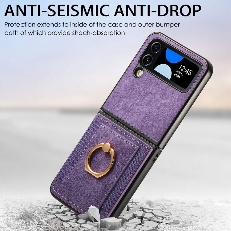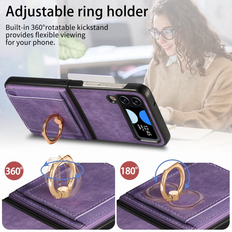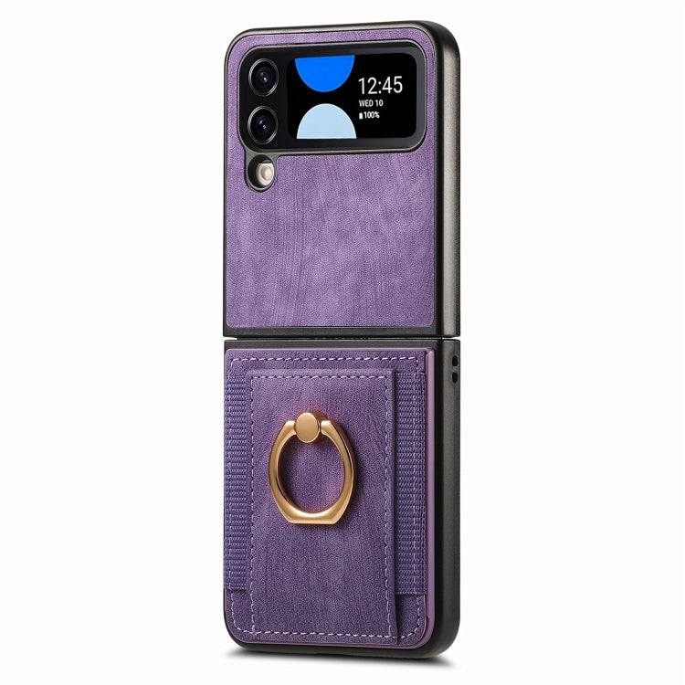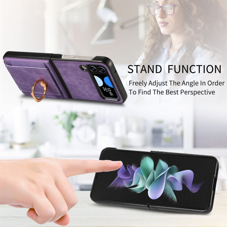 Retro Skin-Feel Case with Ring & Card Pocket Purple Galaxy Z Flip 4