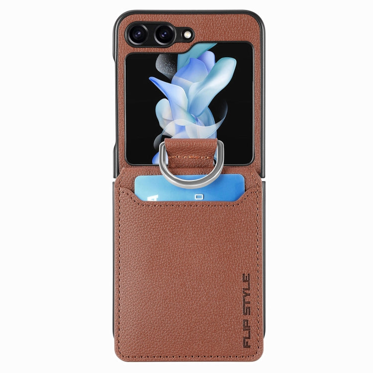 Litchi Texture Leather Wallet Case with Ring Brown Galaxy Z Flip 5
