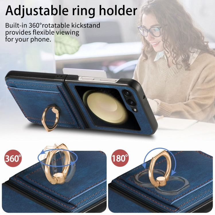 Retro Skin-Feel Case with Ring & Card Pocket Blue Galaxy Z Flip 5
