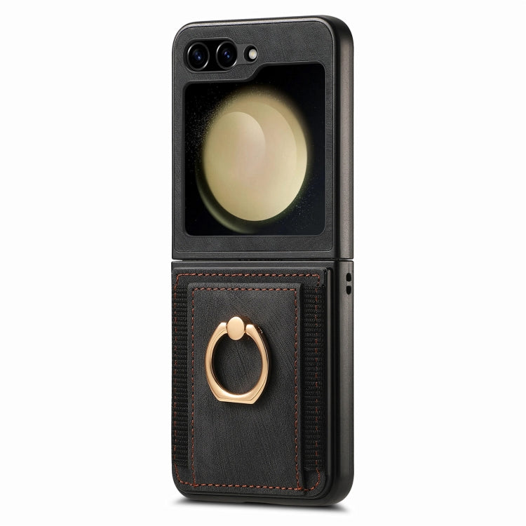Retro Skin-Feel Case with Ring & Card Pocket Black Galaxy Z Flip 6