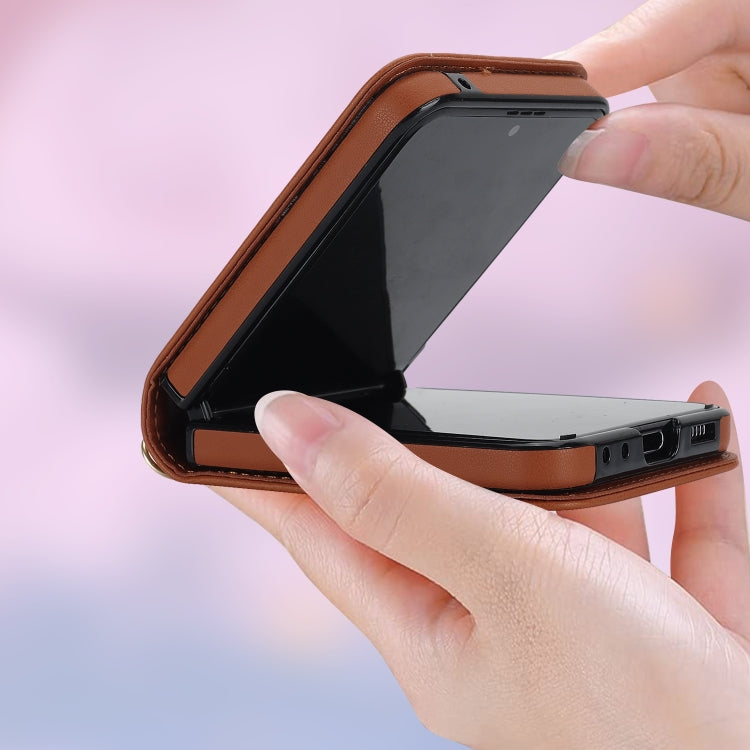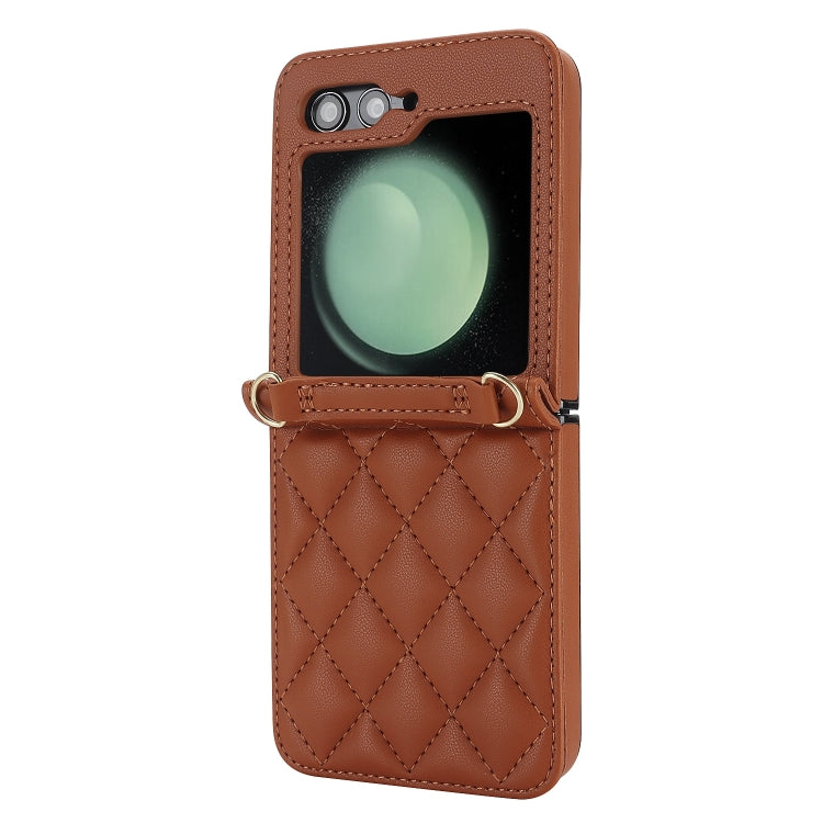 Rhombic Texture Case with Long & Short Lanyard Brown Galaxy Z Flip 6