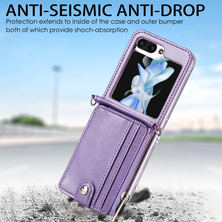 2-in-1 Crossbody Wallet Leather Case Purple Galaxy Z Flip 6
