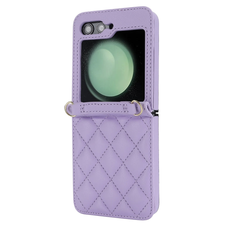 Rhombic Texture Case with Long & Short Lanyard Light Purple Galaxy Z Flip 6